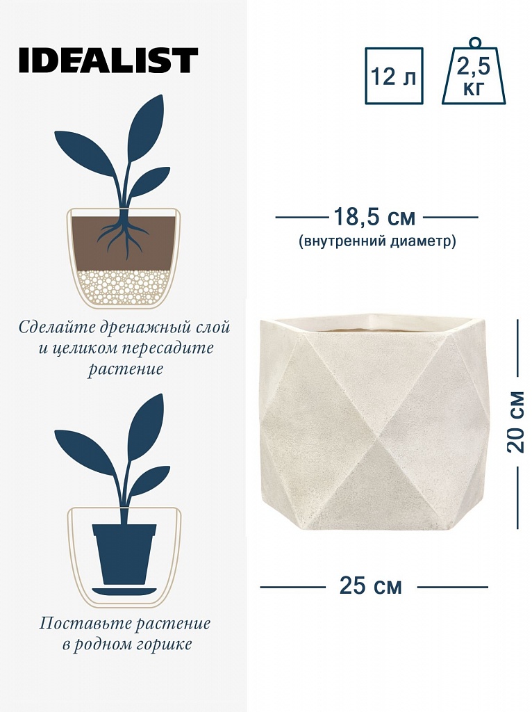 Настольное кашпо IDEALIST LITE Геометри, ромб, слоновая кость, Ш25 Д25 В20 см