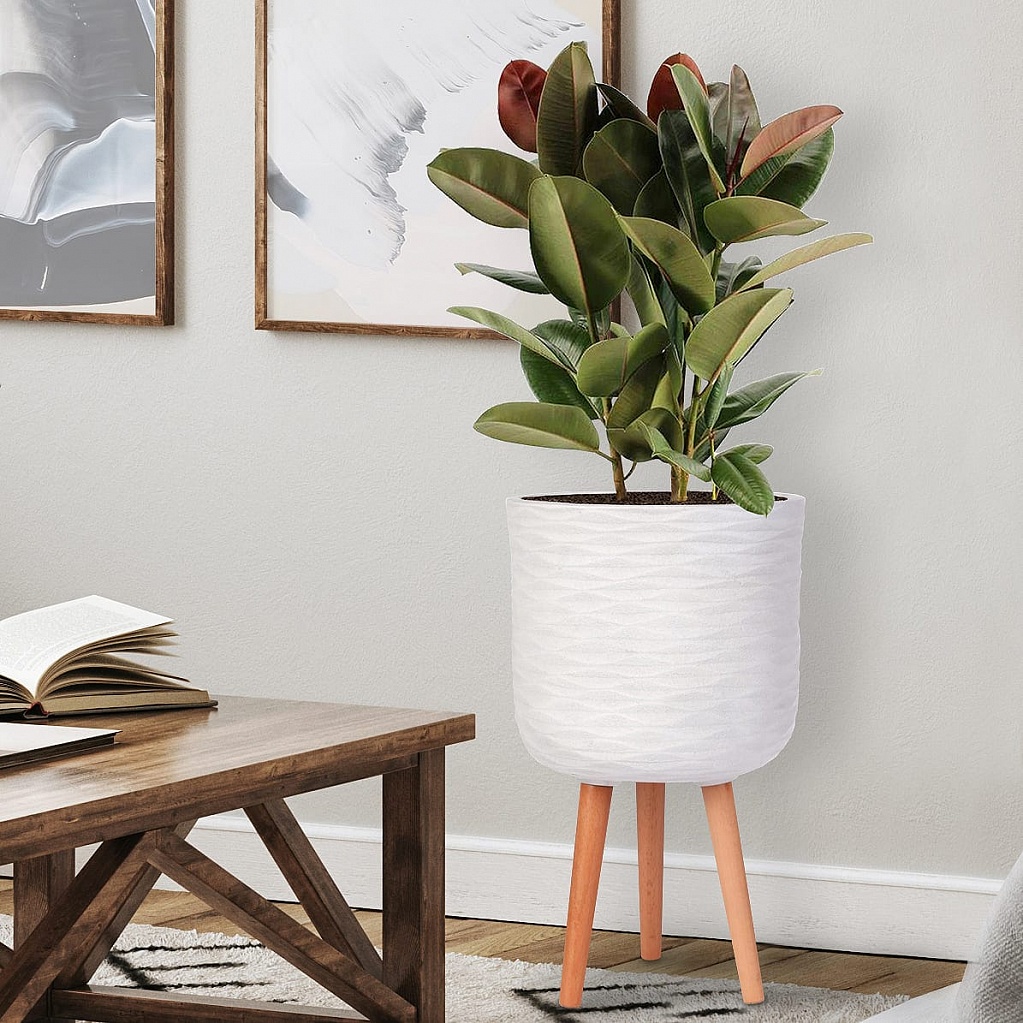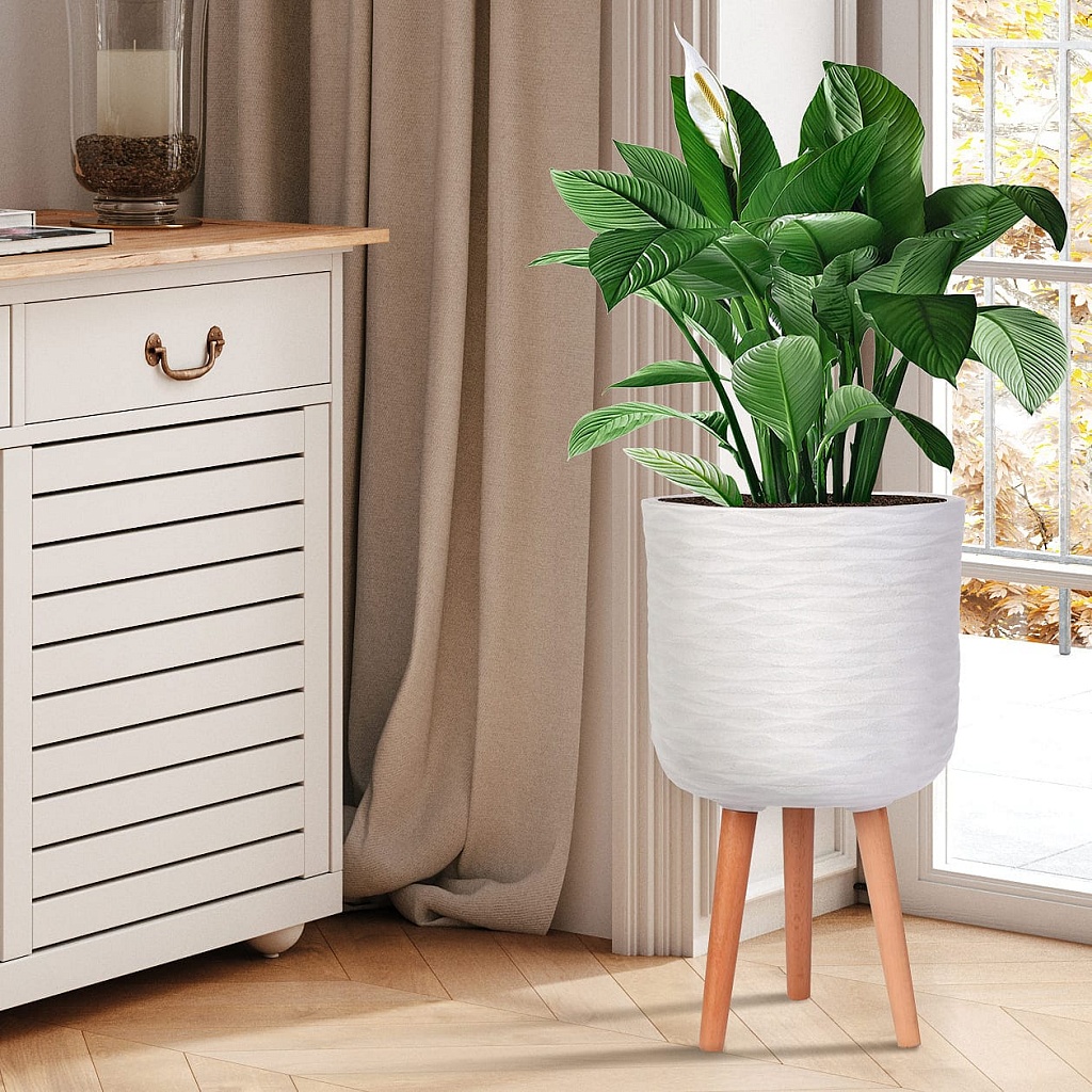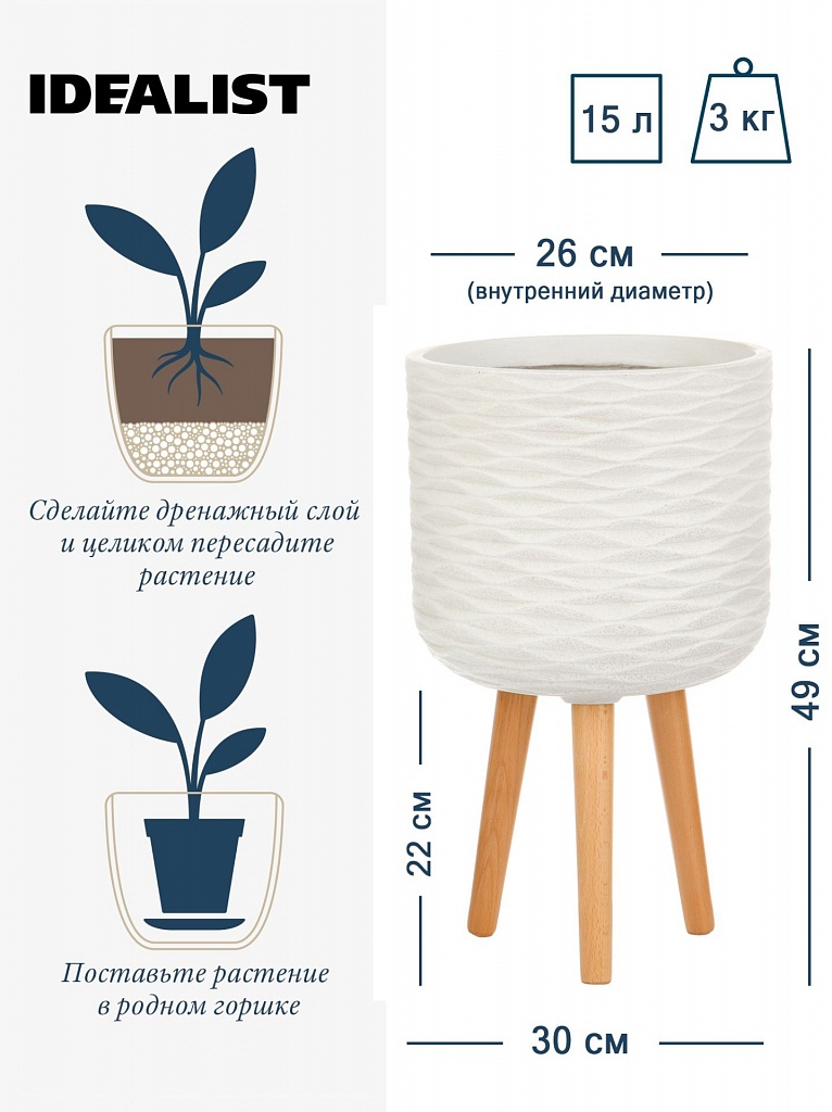 Напольное кашпо IDEALIST LITE Паттерн на ножках, круглое, слоновая кость, Д30 В49 см, высота ножек 22 см