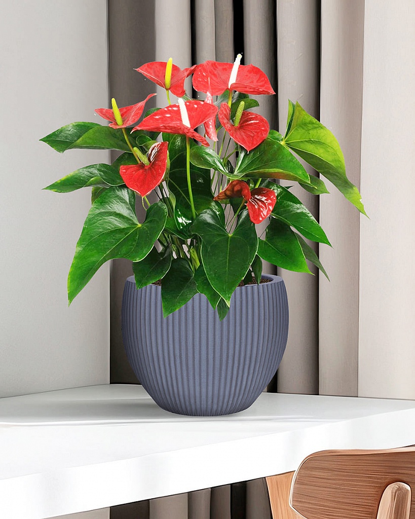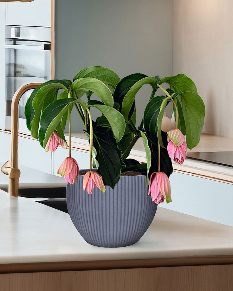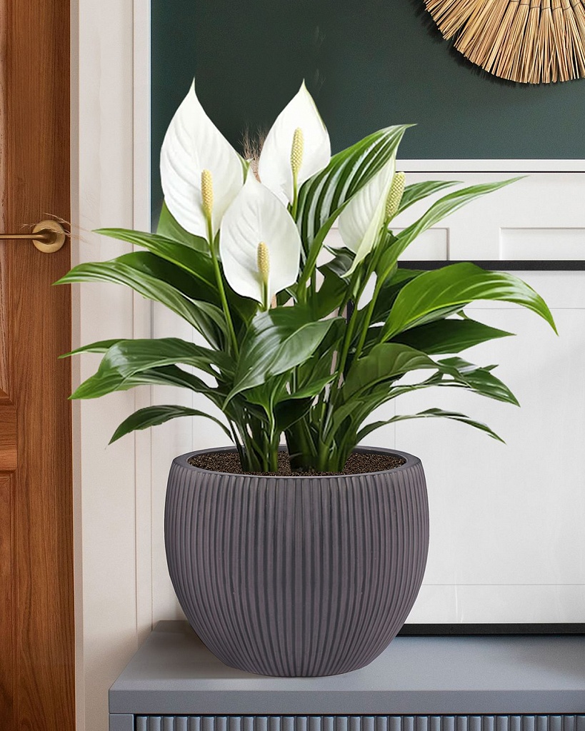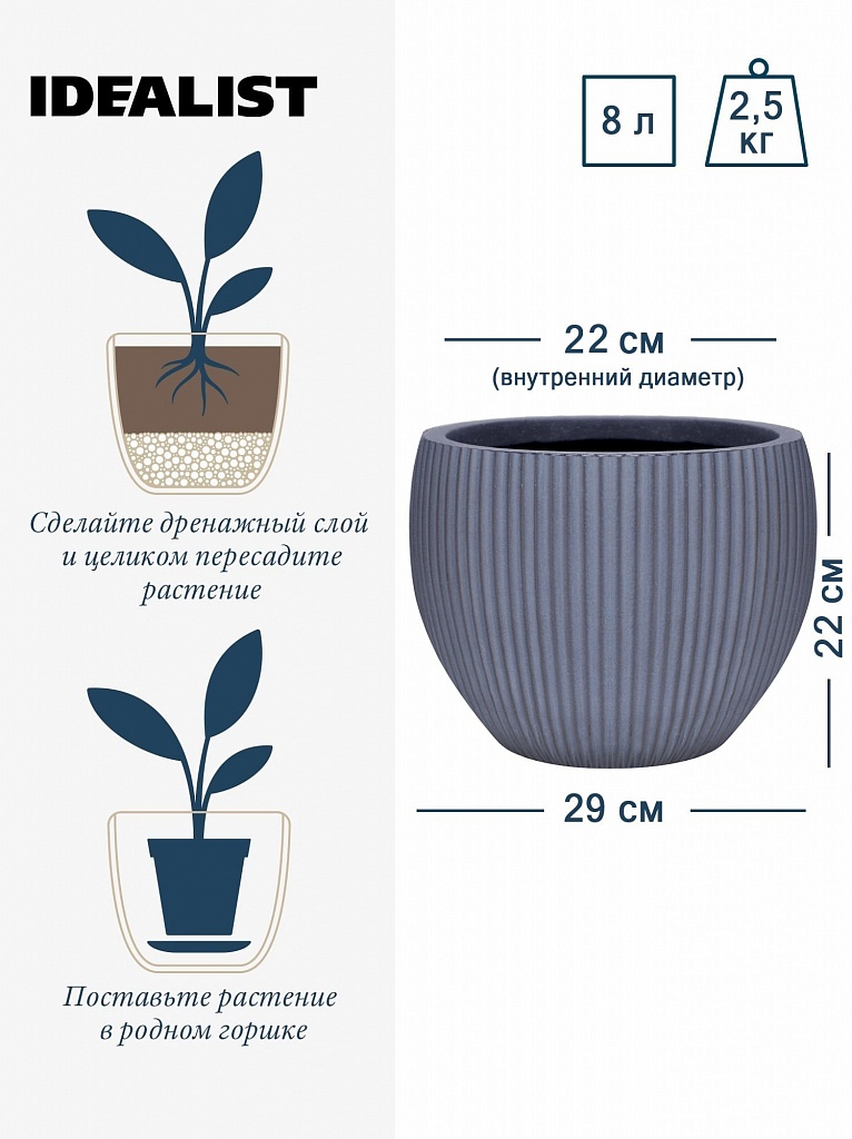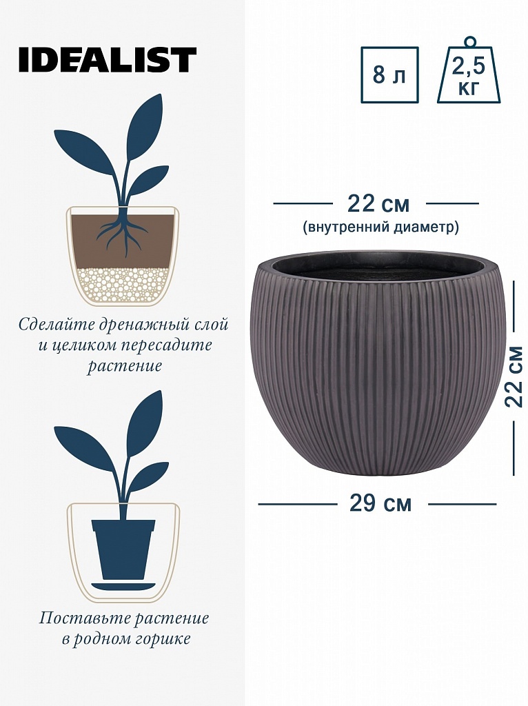 MAR29-GR Настольное кашпо для цветов IDEALIST Премиум Марс, Д29 В22, серое, круглое, 9 литров