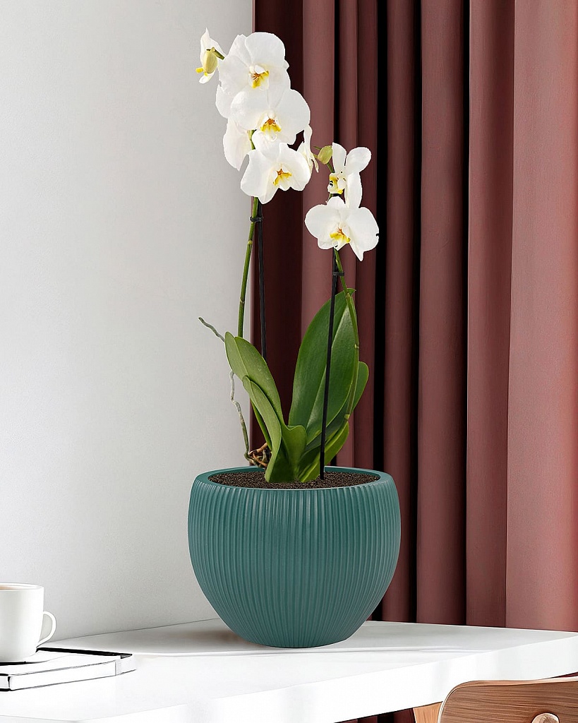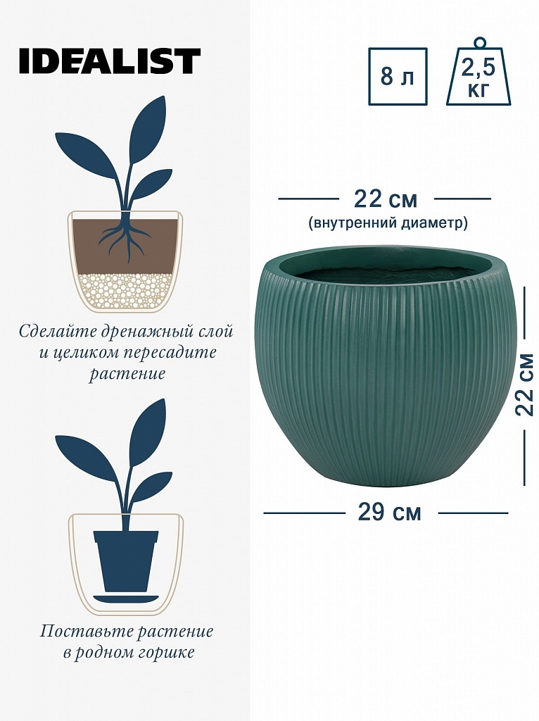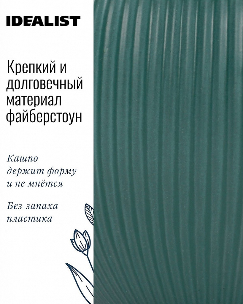 MAR29-GRN Настольное кашпо для цветов IDEALIST Премиум Марс, Д29 В22, изумрудное, круглое, 9 литров