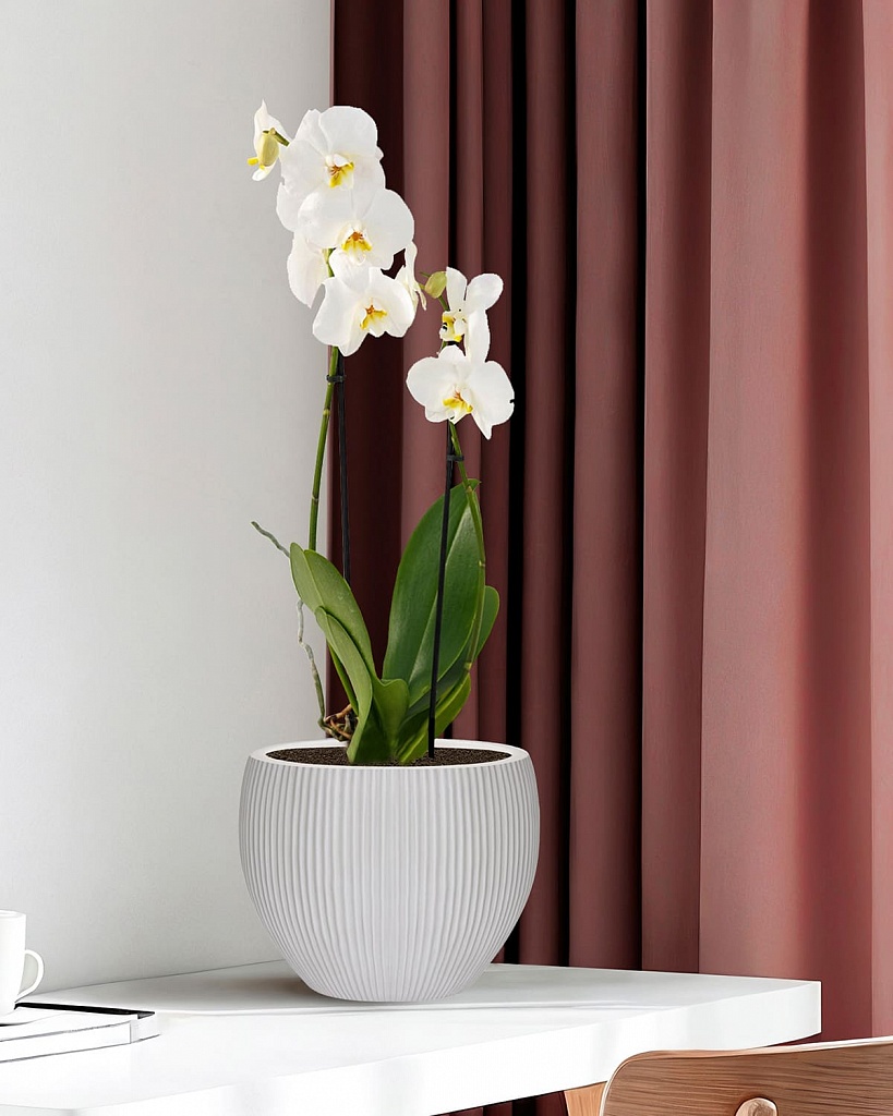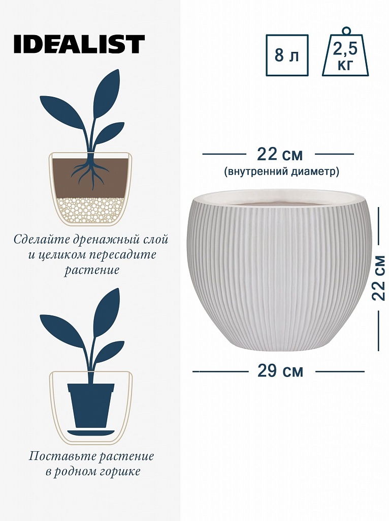 MAR29-AW Настольное кашпо для цветов IDEALIST Премиум Марс, Д29 В22, белое, круглое, 9 литров
