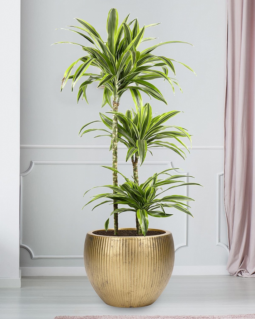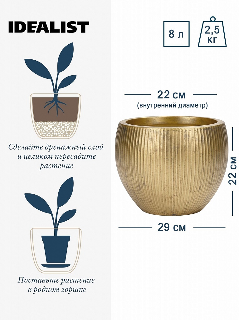 MAR29-GLD Настольное кашпо для цветов IDEALIST Премиум Марс, Д29 В22, золотое, круглое, 9 литров