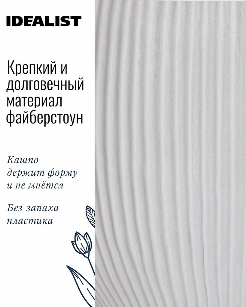 MAR49-AW Напольное кашпо для цветов IDEALIST Премиум Марс, Д49 В38 см, белое, круглое, 55 литров