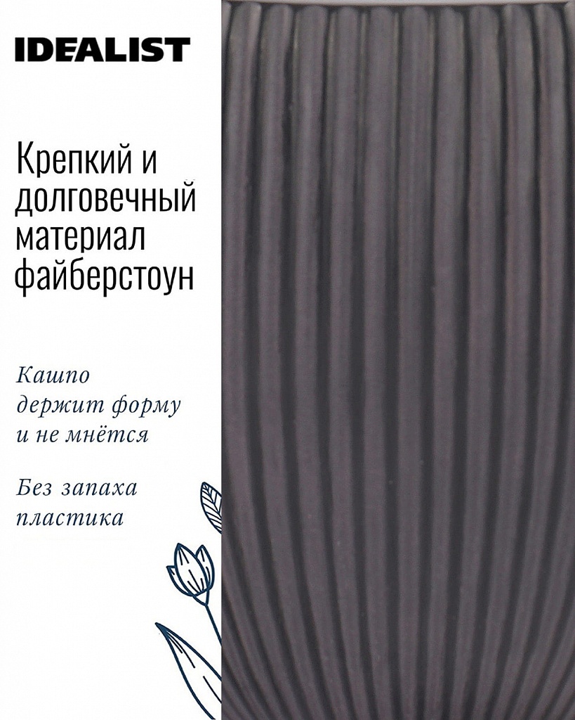 MAR49-GR Напольное кашпо для цветов IDEALIST Премиум Марс, Д49 В38 см, серое, круглое, 55 литров