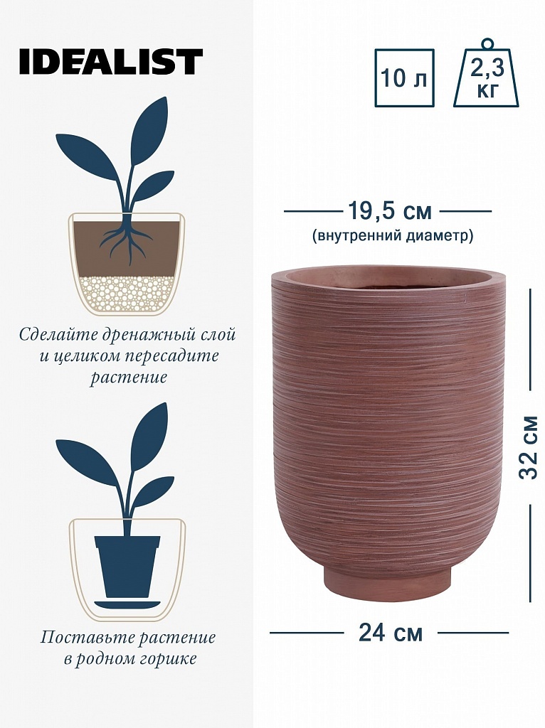 NEO24-BRN Напольное кашпо для цветов IDEALIST Премиум Нео, высокое, Д24 В32 см, цвет шоколад, 11 литров