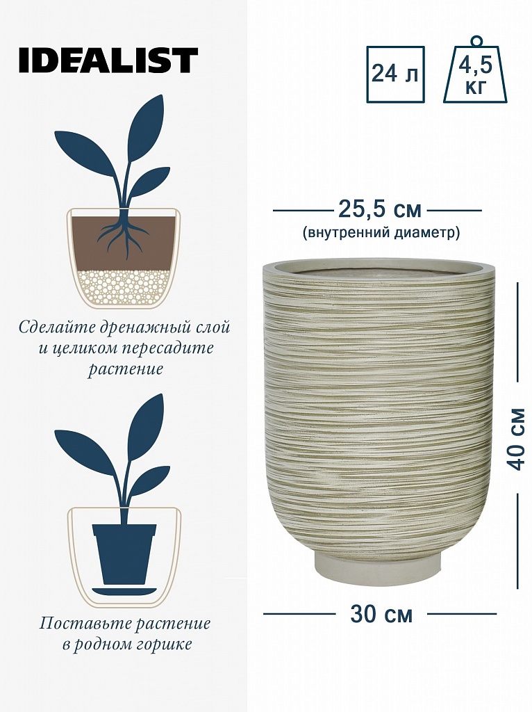 NEO30-BB Напольное кашпо для цветов IDEALIST Премиум Нео, высокое, Д30 В40 см, бежевое, 24 литра
