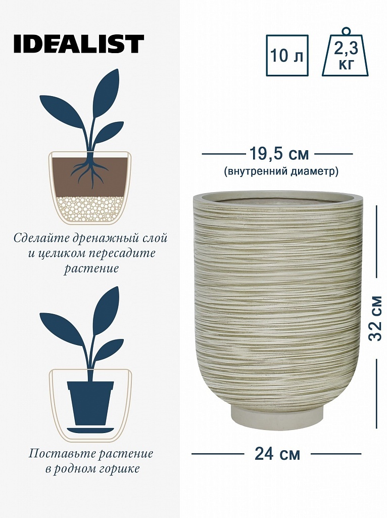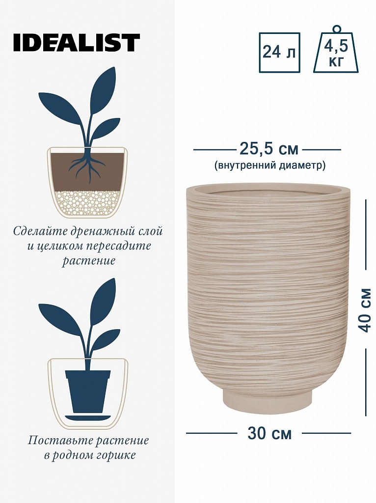 NEO24-BB Настольное кашпо для цветов IDEALIST Премиум Нео, высокое, Д24 В32 см, бежевое, 11 литров