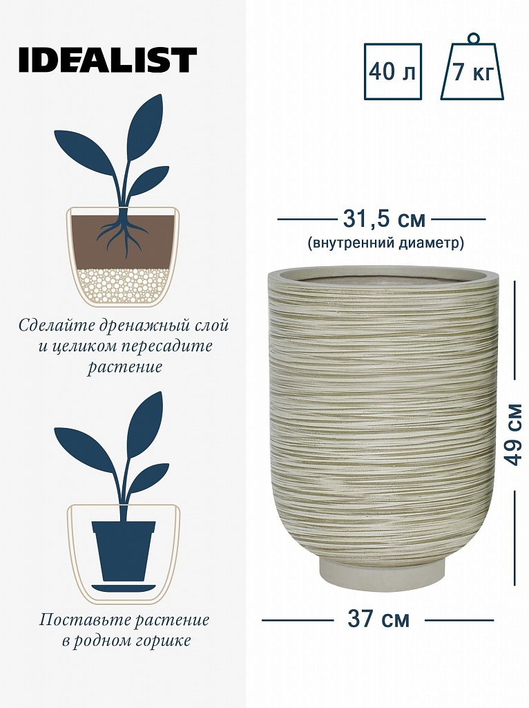 NEO37-BB Напольное кашпо для цветов IDEALIST Премиум Нео, высокое, Д37 В49 см, бежевое, 45 литров